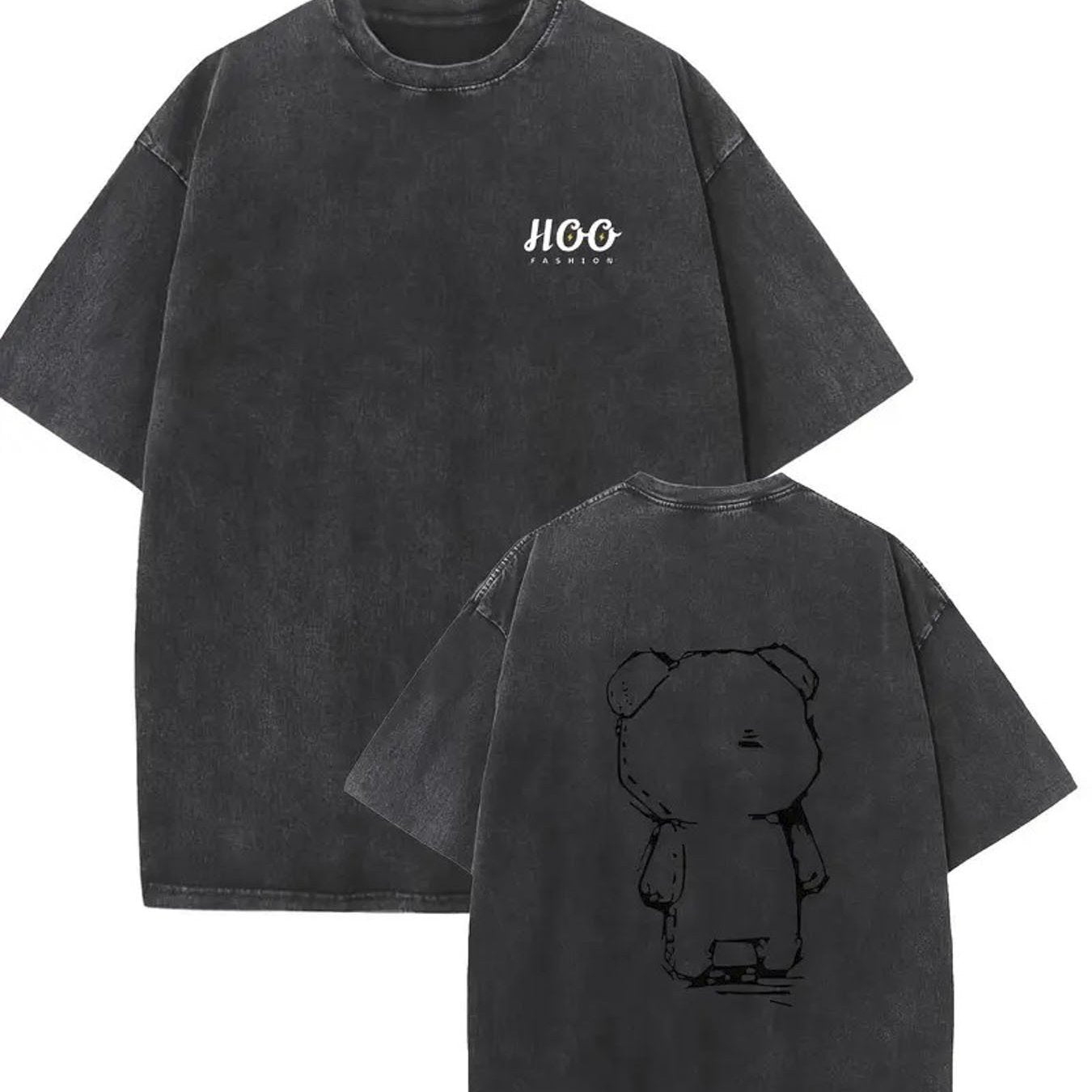 1pc, 230G Double-Sided Washed, Sticker Teddy Bear Printed T-Shirt