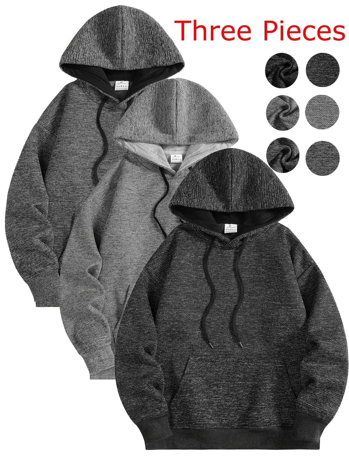 3pcs Men'S Comfortable Hooded Sweatshirts - Soft Plush Pullover with Pockets
