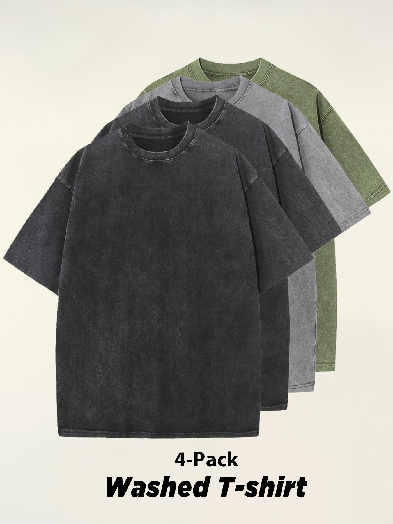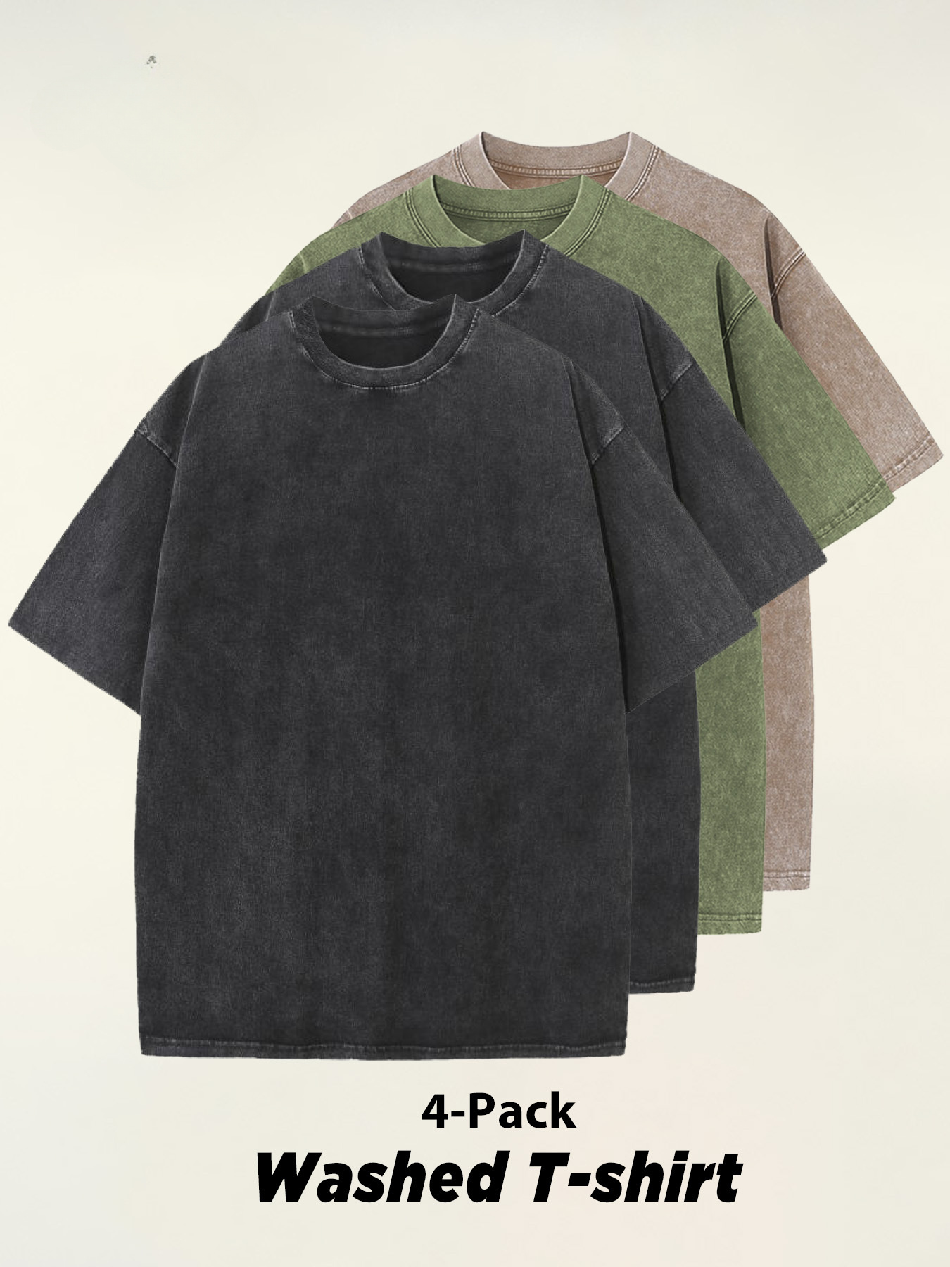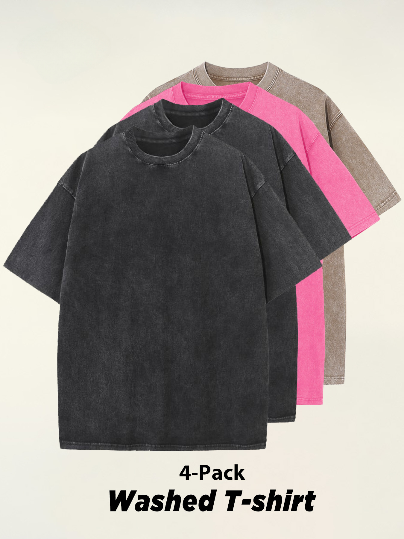 4pcs 100% Cotton Acid-Washed 230g T-Shirts - Retro Vintage Style