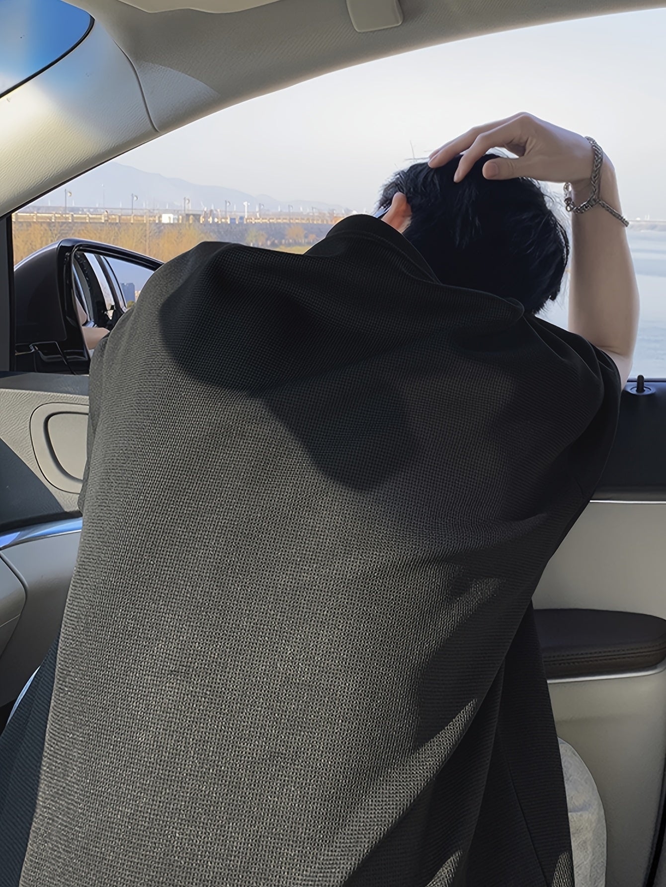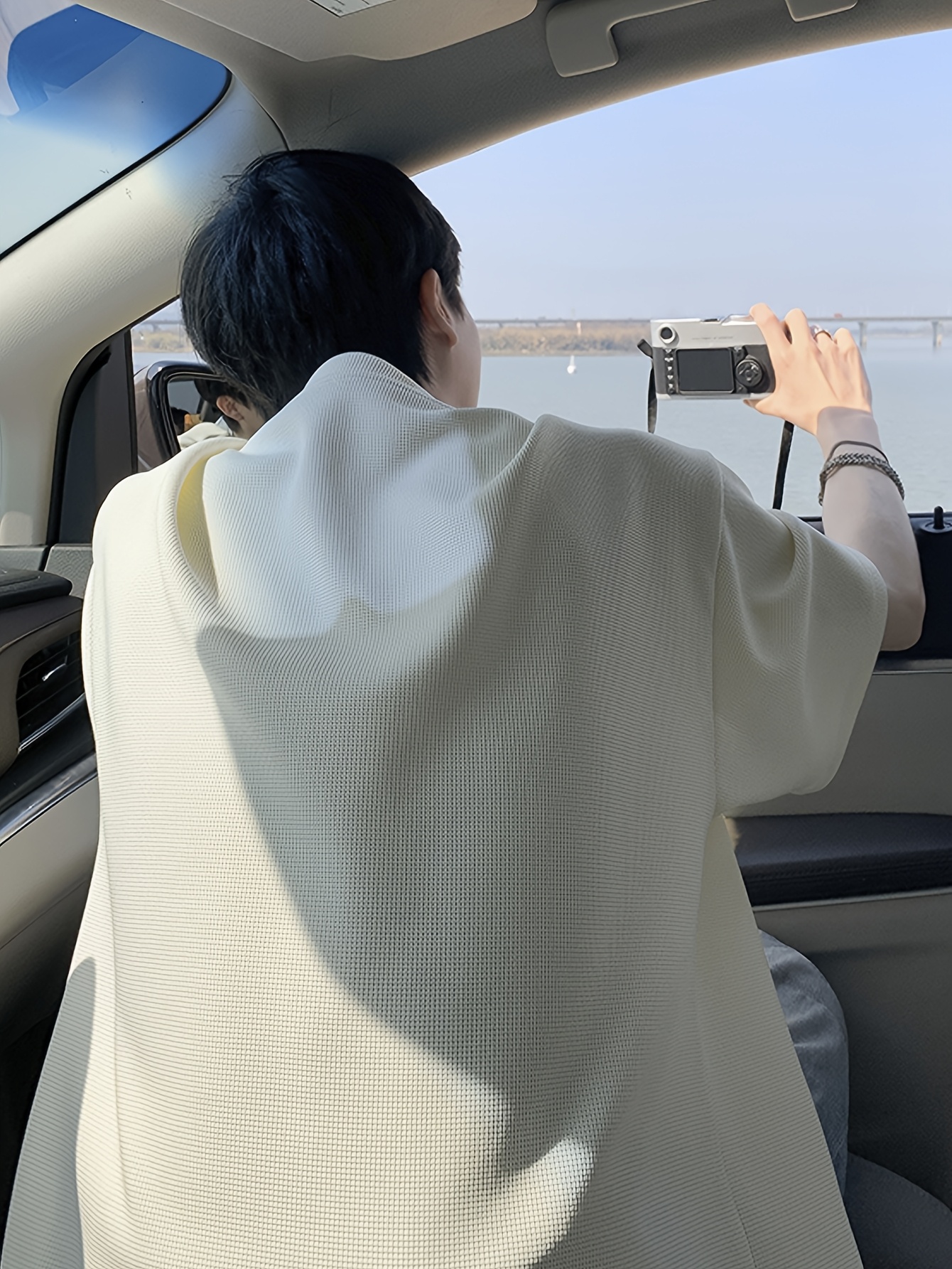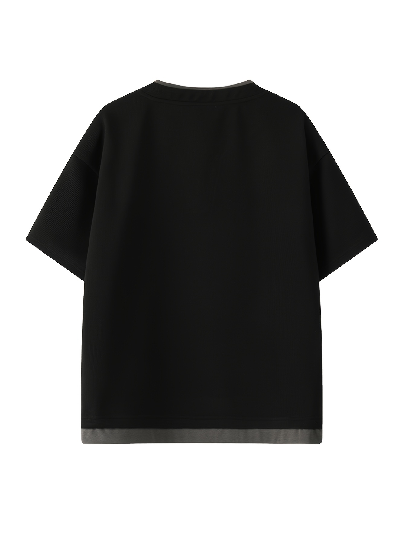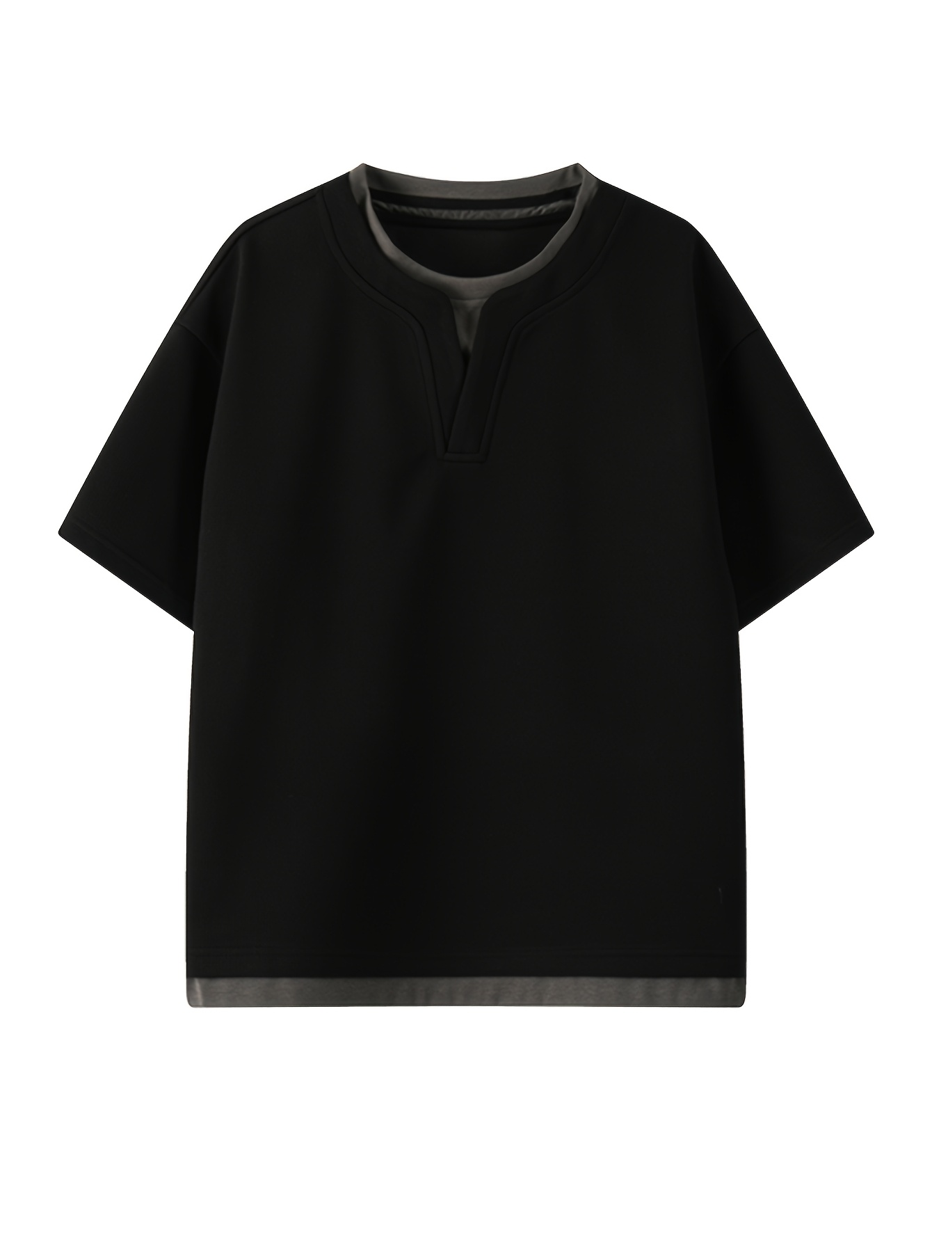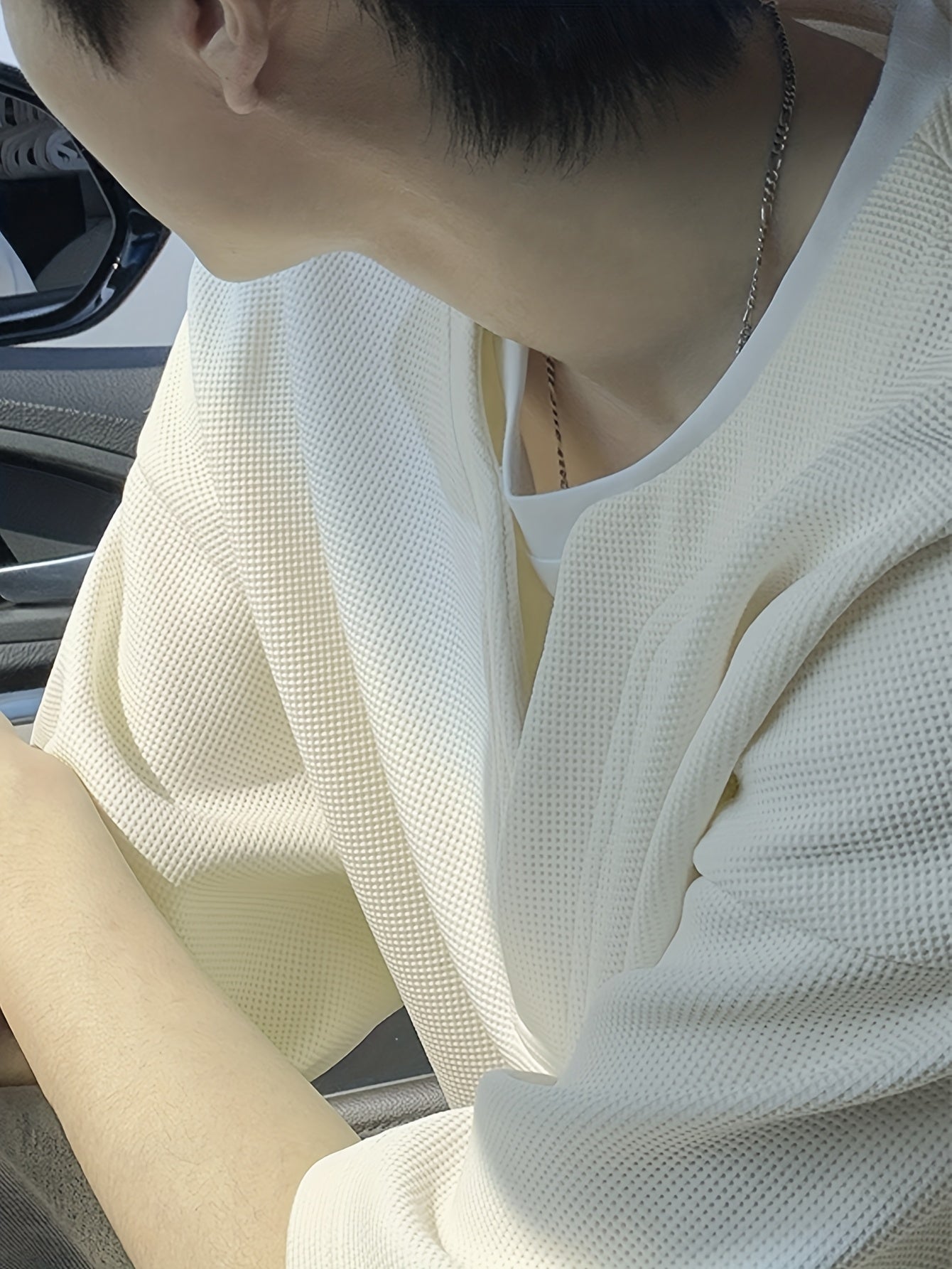Casual T-Shirt OBM Men's Casual V-Neck Short Sleeve T-Shirt | Loose Fit Waffle Fabric, Solid Color with Contrast Trim