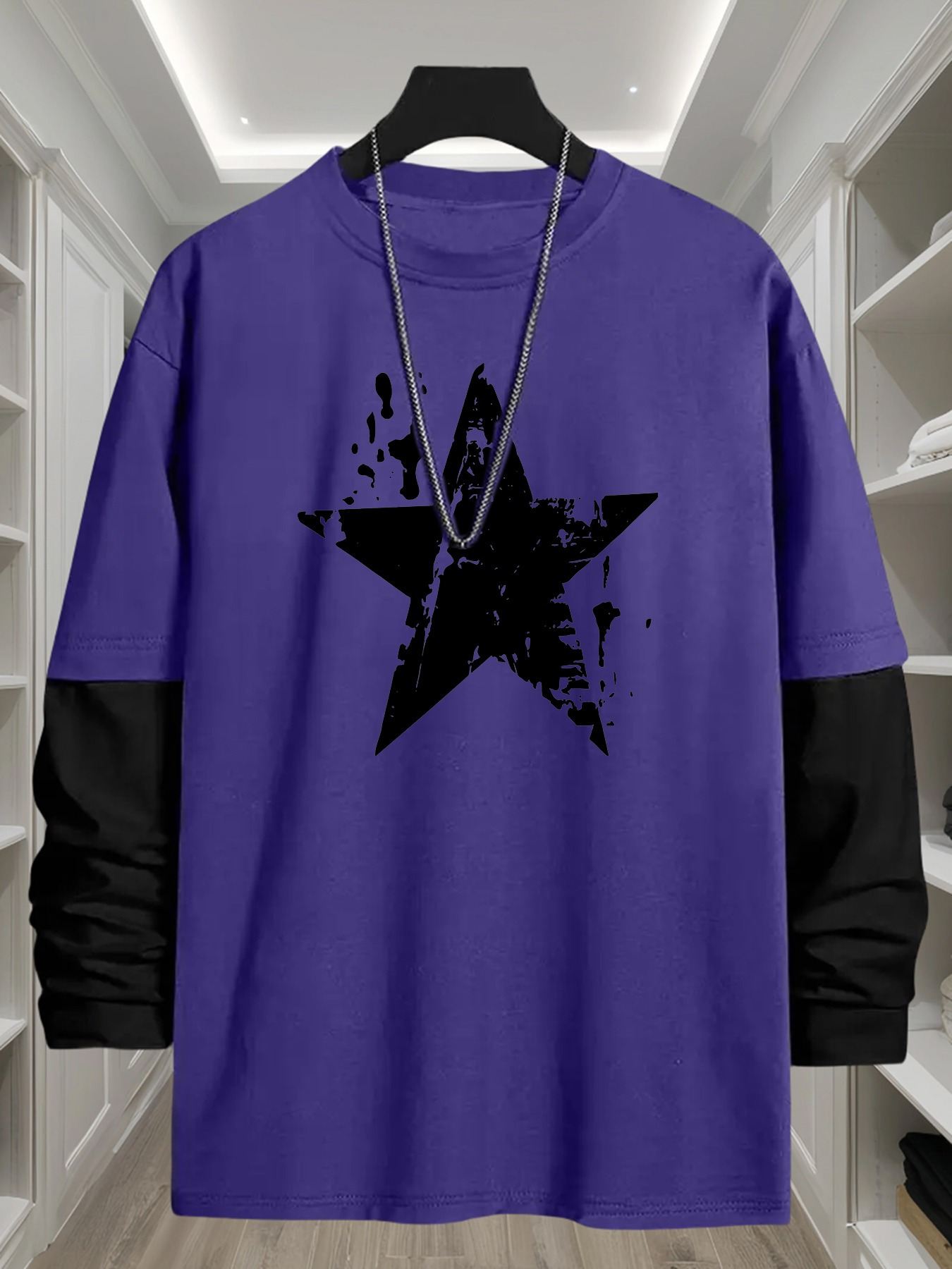 Geometric T-Shirt Polyester Men's Casual Long Sleeve T-Shirt | Geometric Print, Loose Fit, Round Neck, Machine Washable