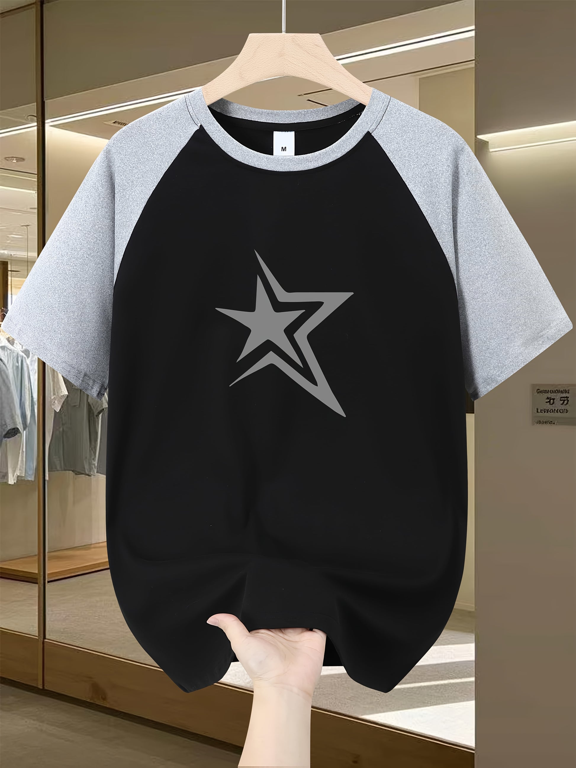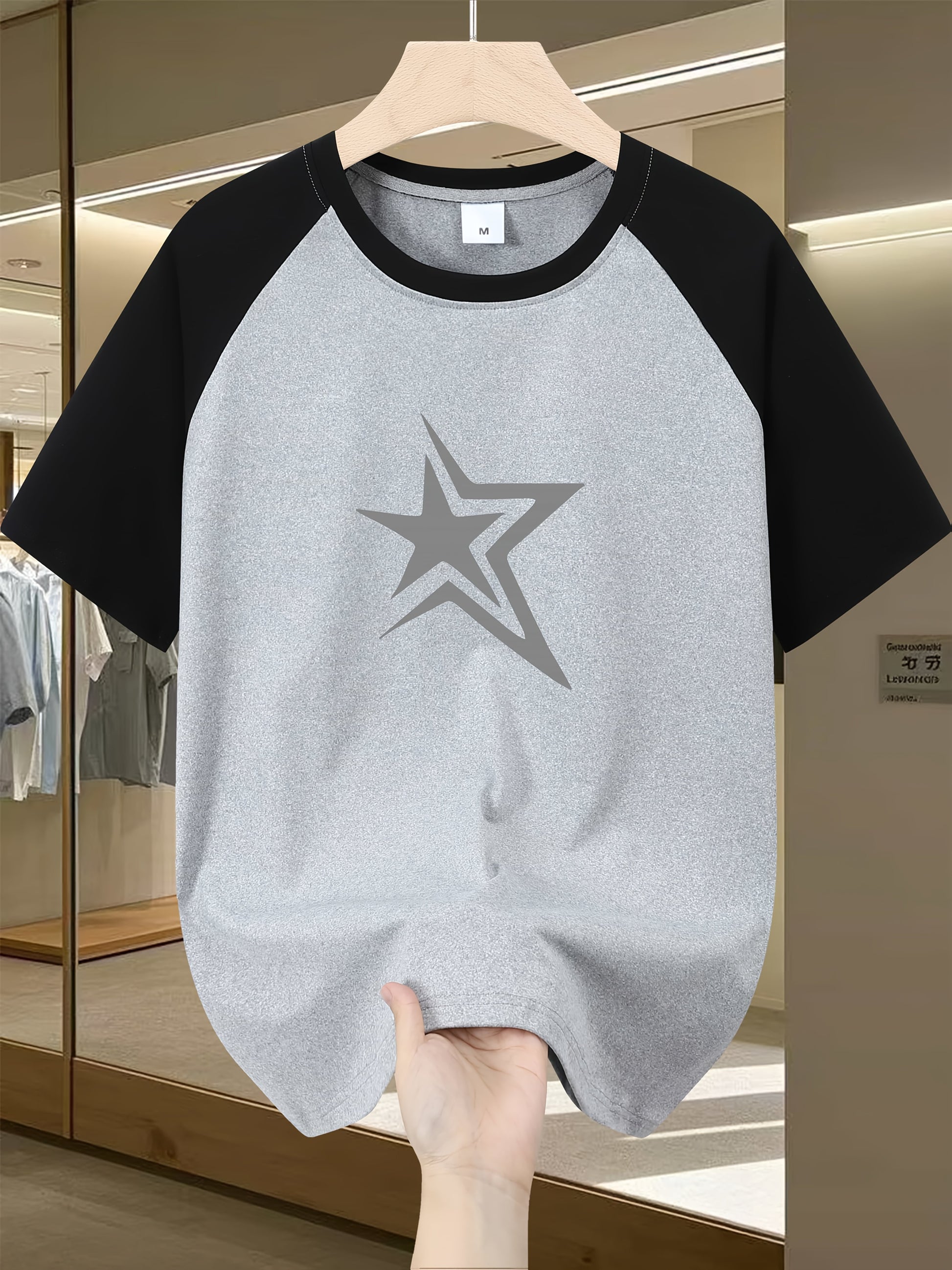 Men'S Casual Crew Neck T-Shirt with Star Graphic, Short Sleeve, Regular Fit, Slight Stretch Fabric, Summer Fashion Tee