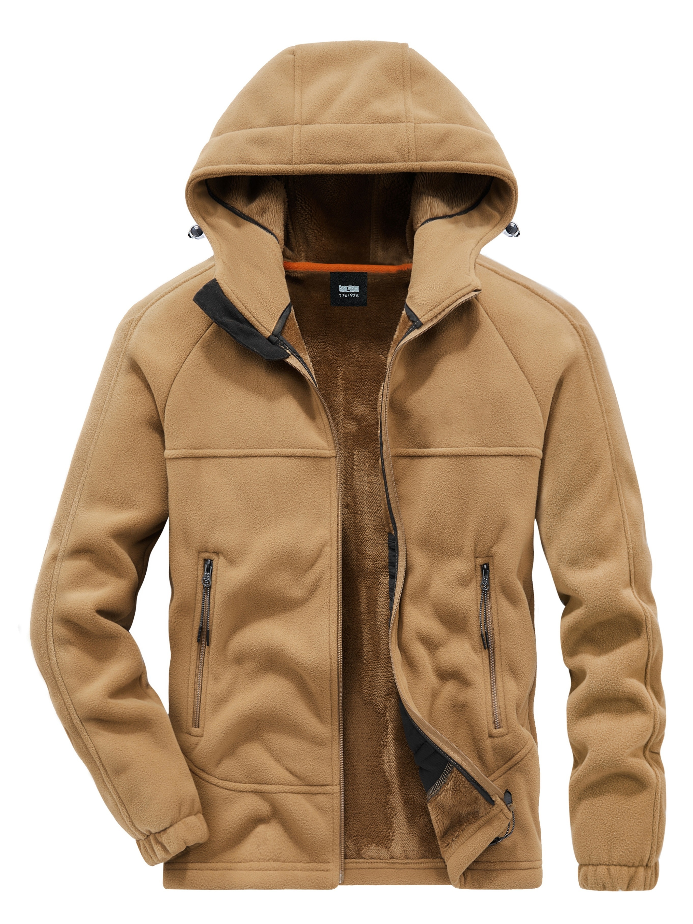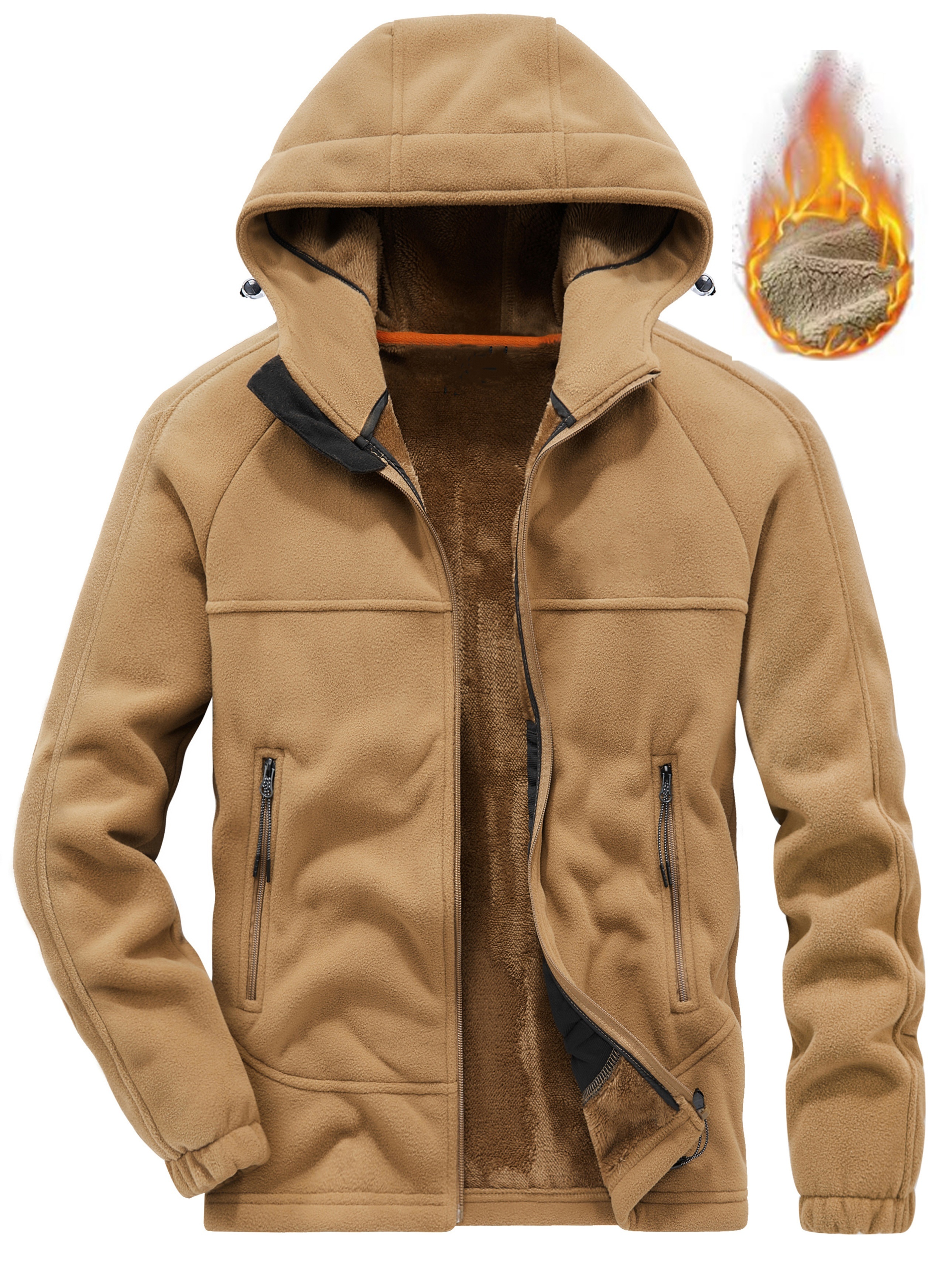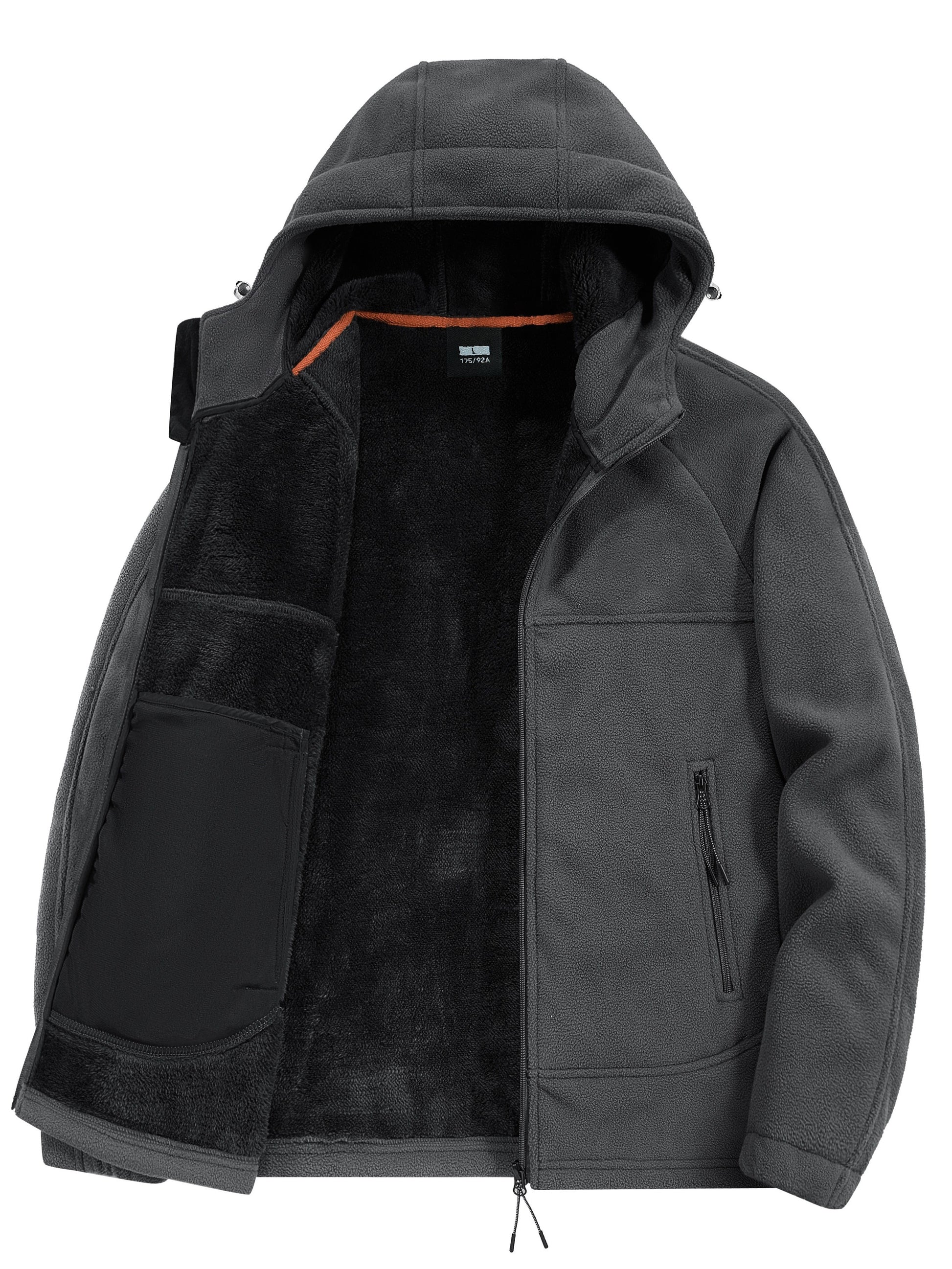 Men'S Casual Hooded Jacket, Polyester Long Sleeve Zip Up Hoodie with Pockets