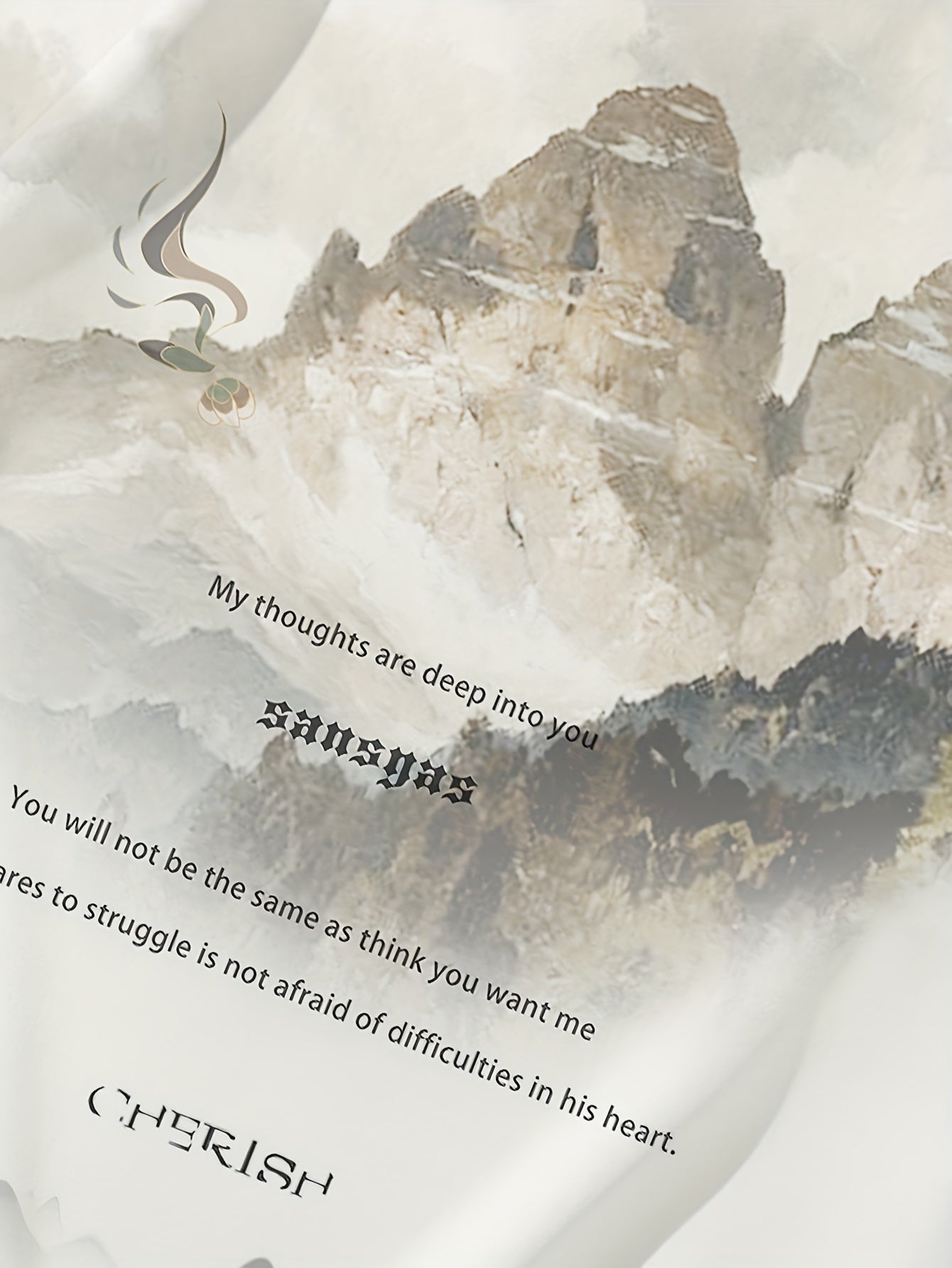 Men's Casual Loose-Fit Short Sleeve T-Shirt - White Mountain & Crane Print, Lightweight Polyester Blend