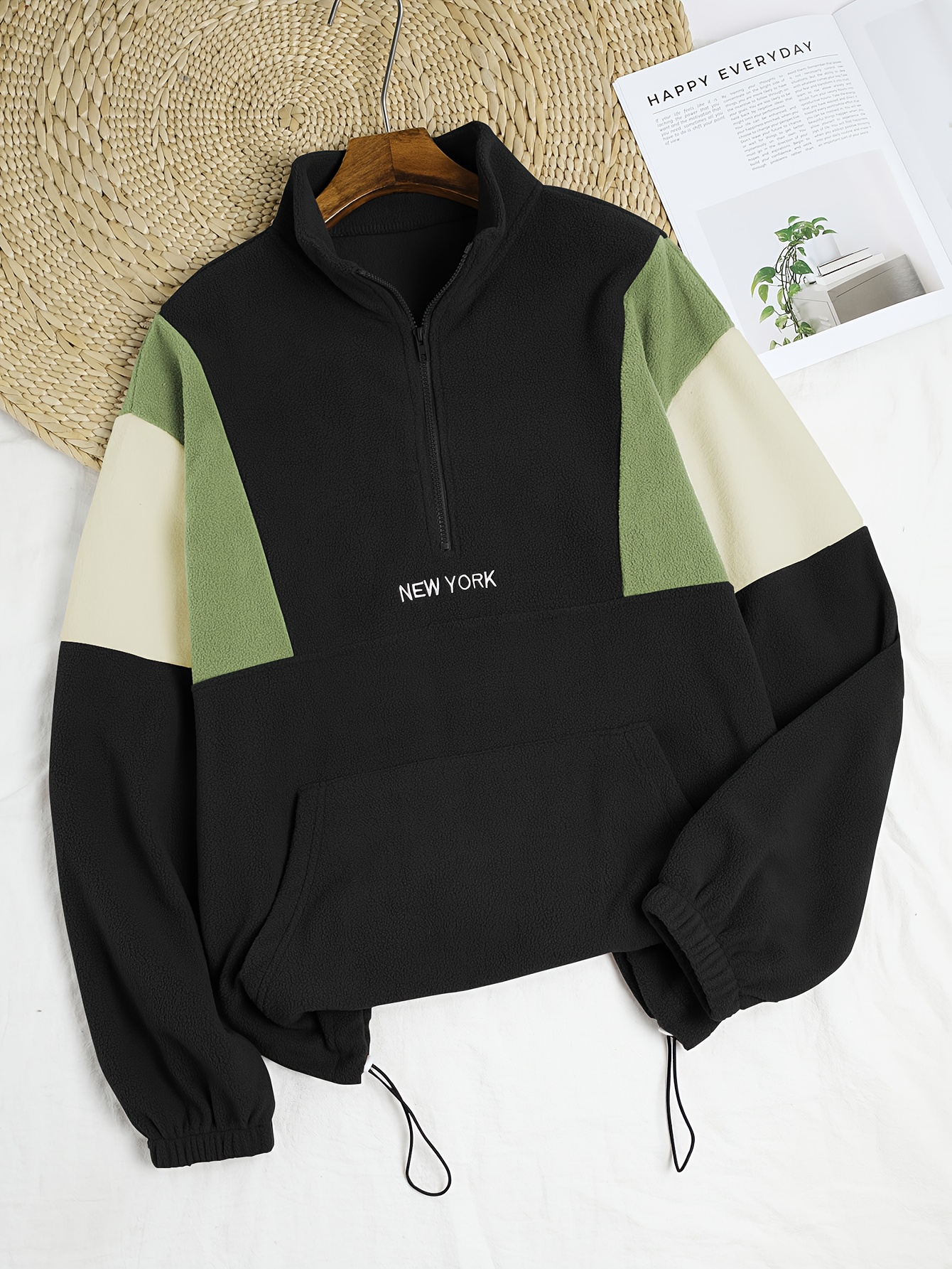 Men's Fluffy Fleece Hooded Sweatshirt with New York City Lettering & Blue