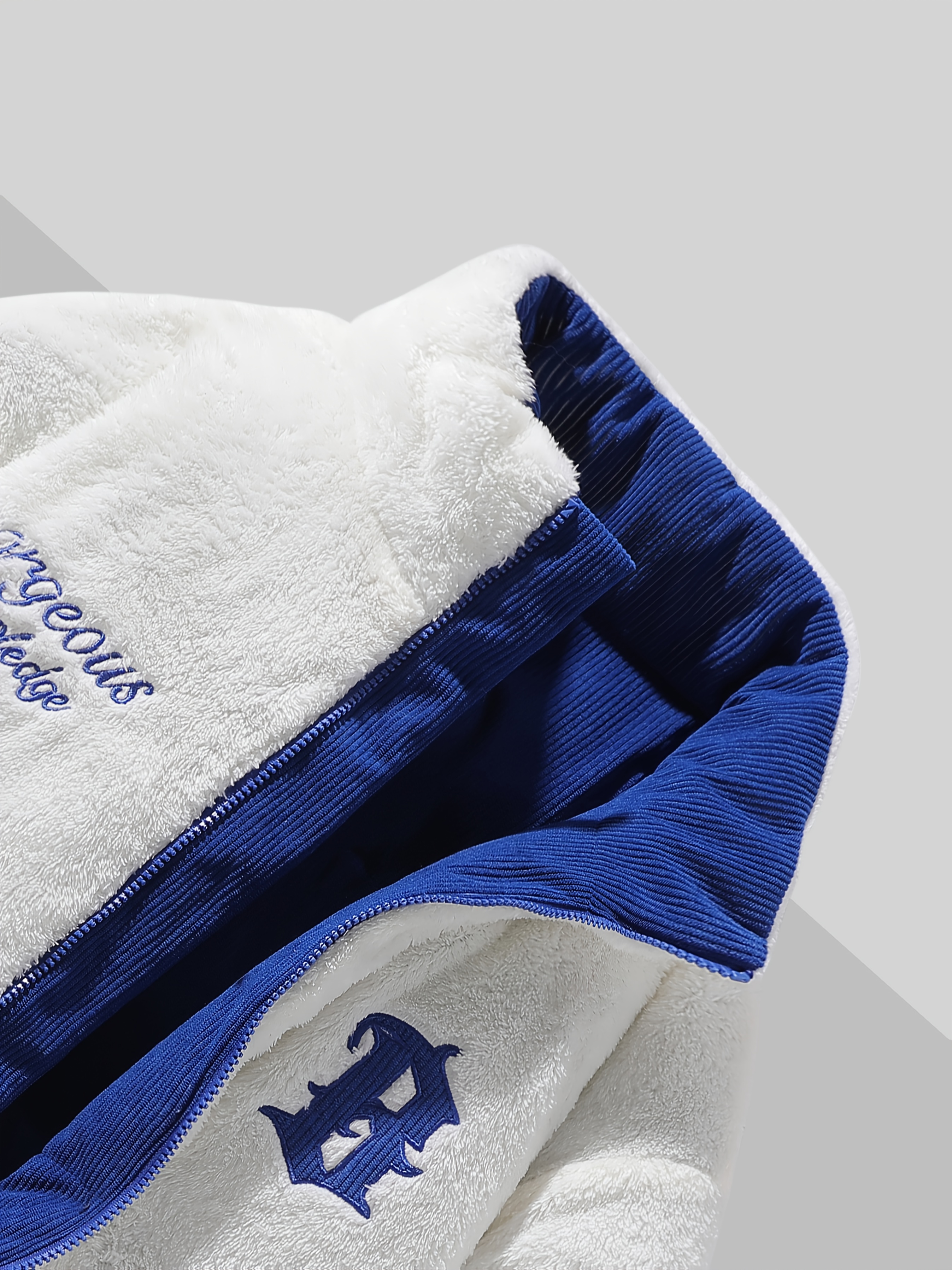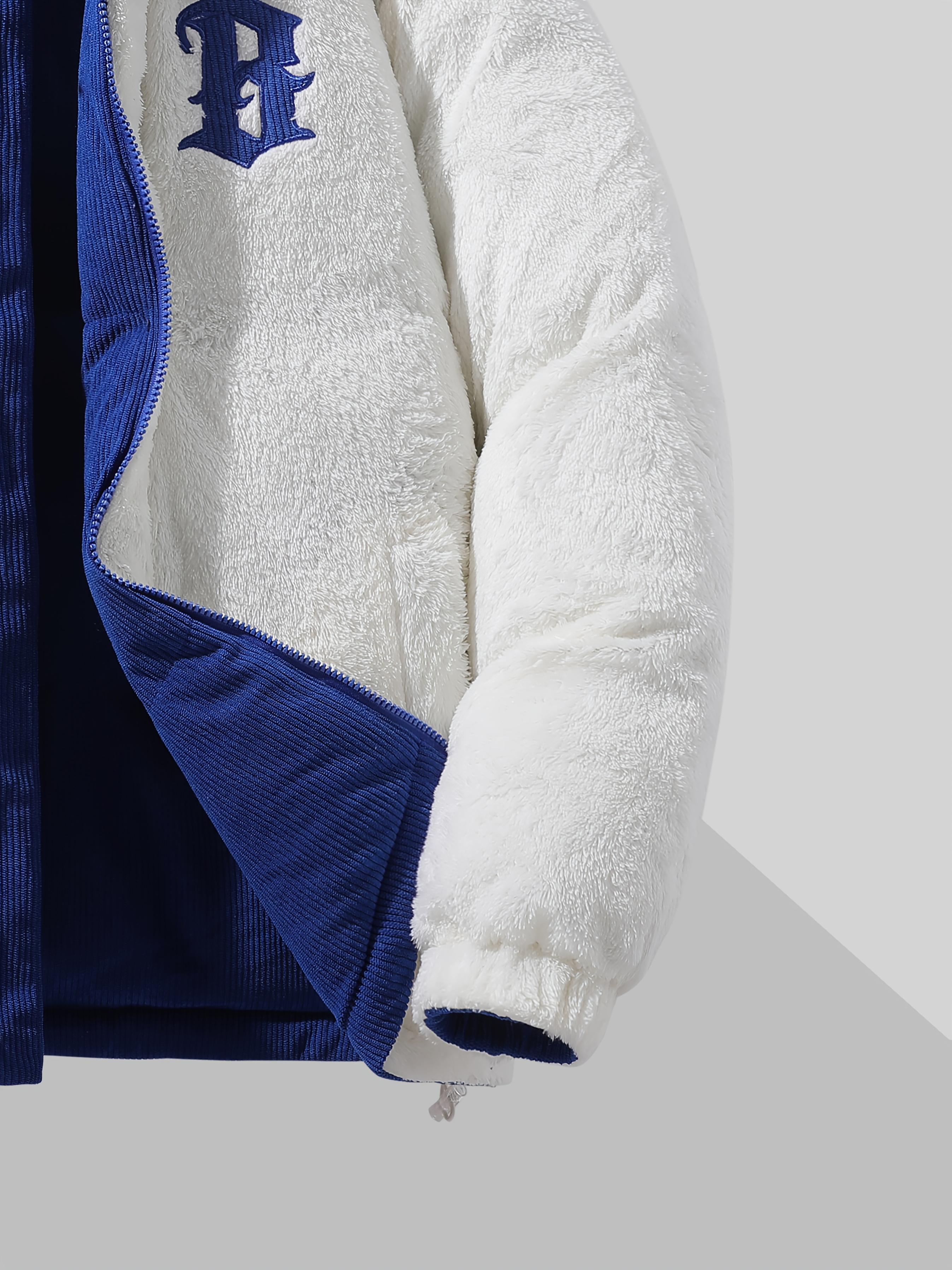 Men's Reversible Winter Jacket with Fleece Lining - Two-Sided Full-Zip Coat, Stand Collar & Logo Patch (R)