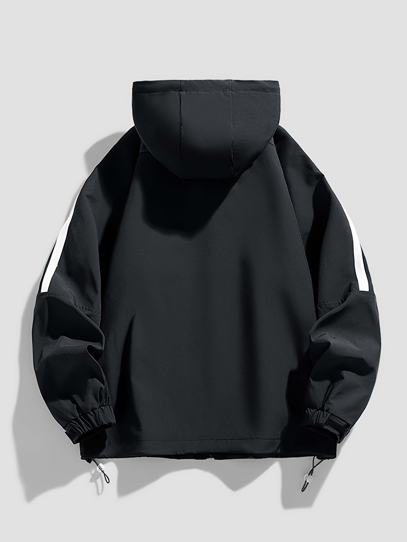 Men's Spring\u002FFall Windbreaker Jacket with Hood - Casual Loose-Fit Striped Coat