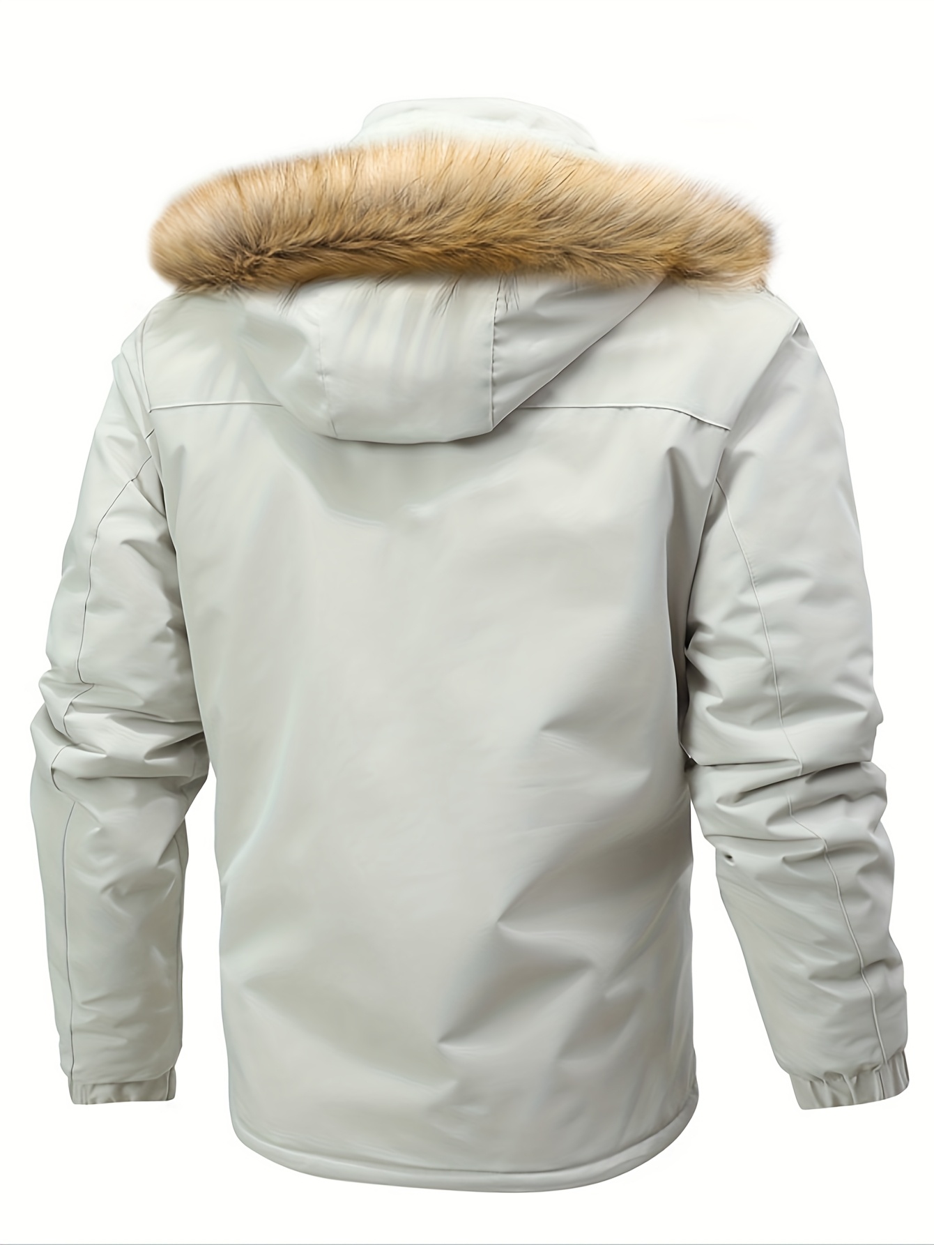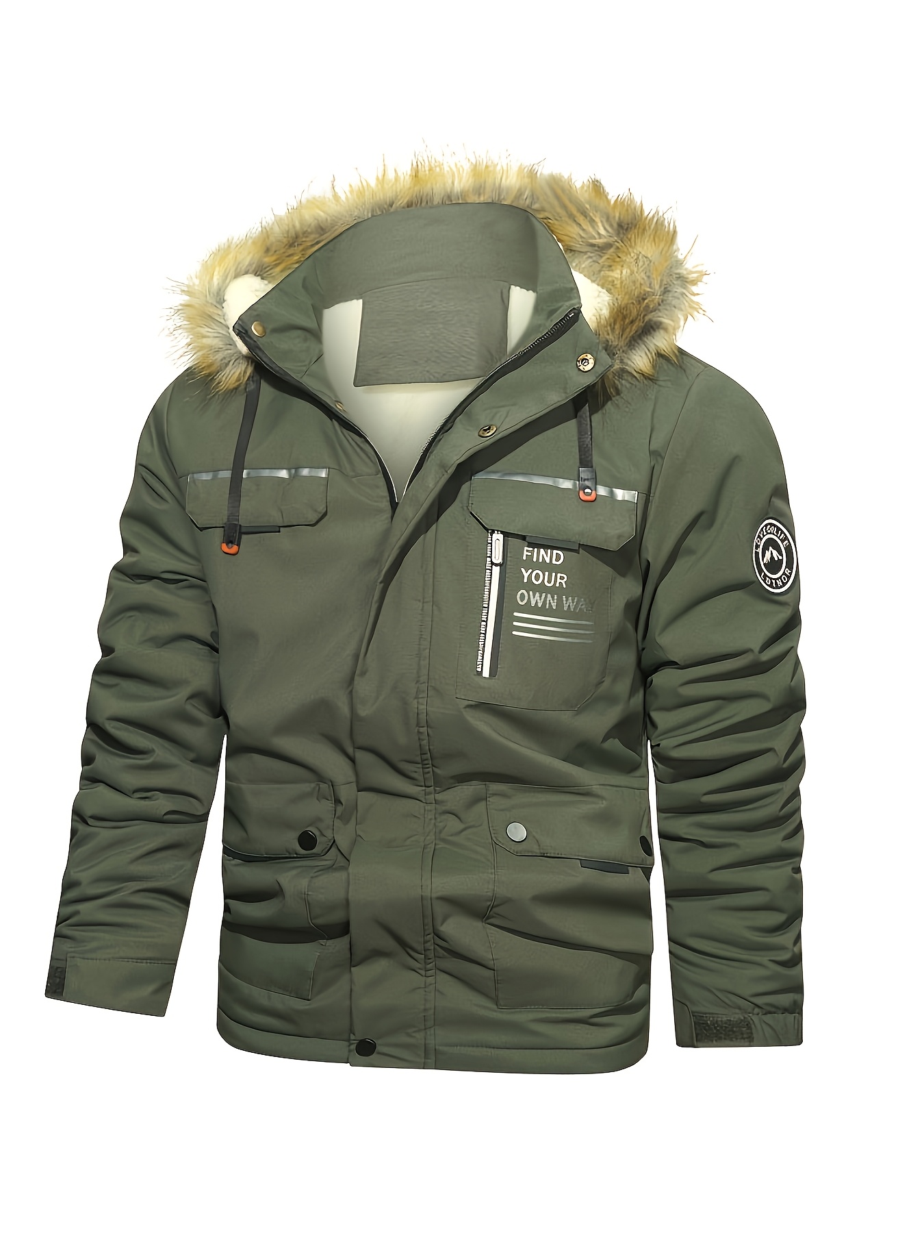 Men'S Winter Hooded Jacket with Fleece Lining - Thickened Zip-Up Coat, Multiple Pockets