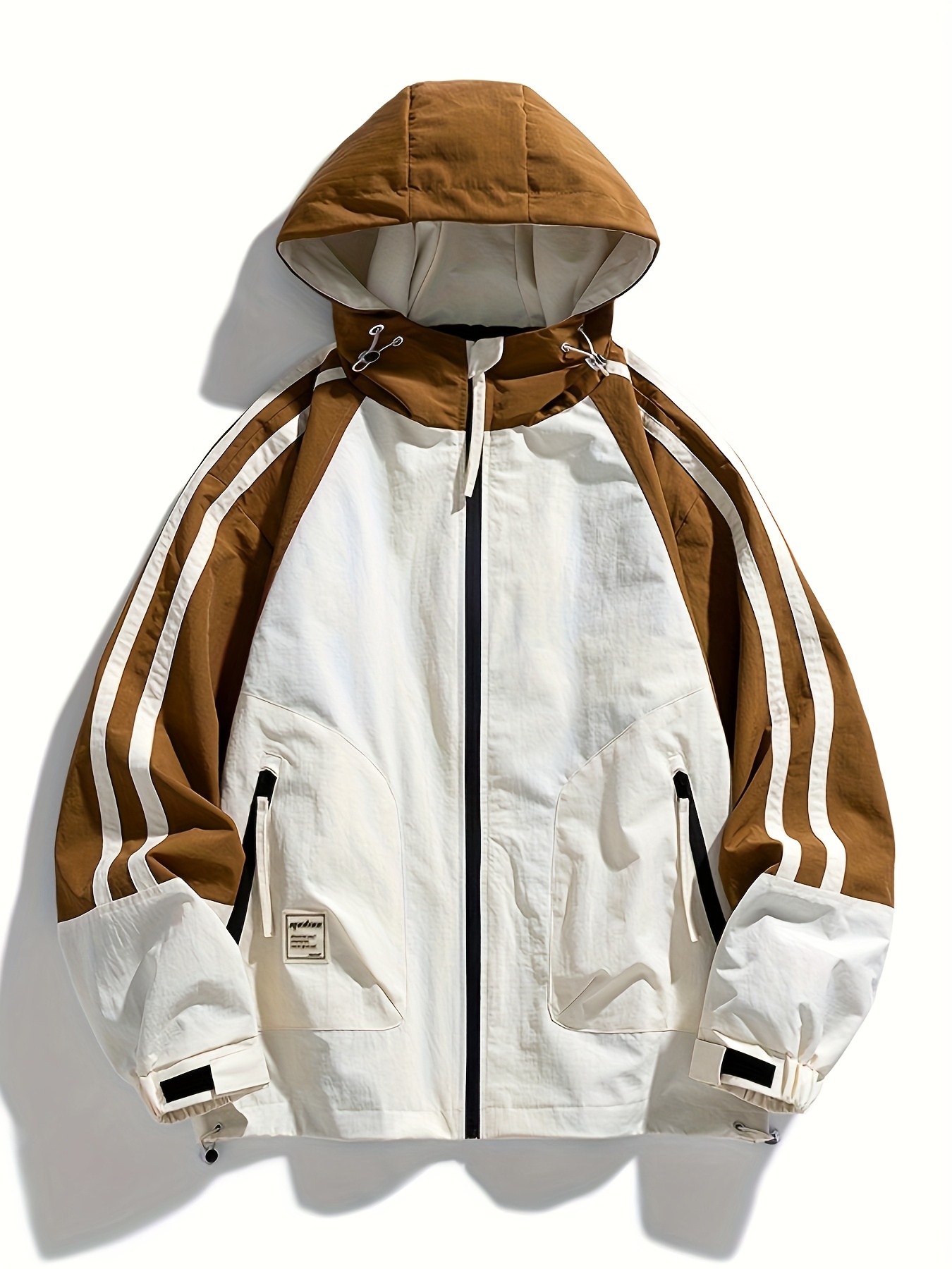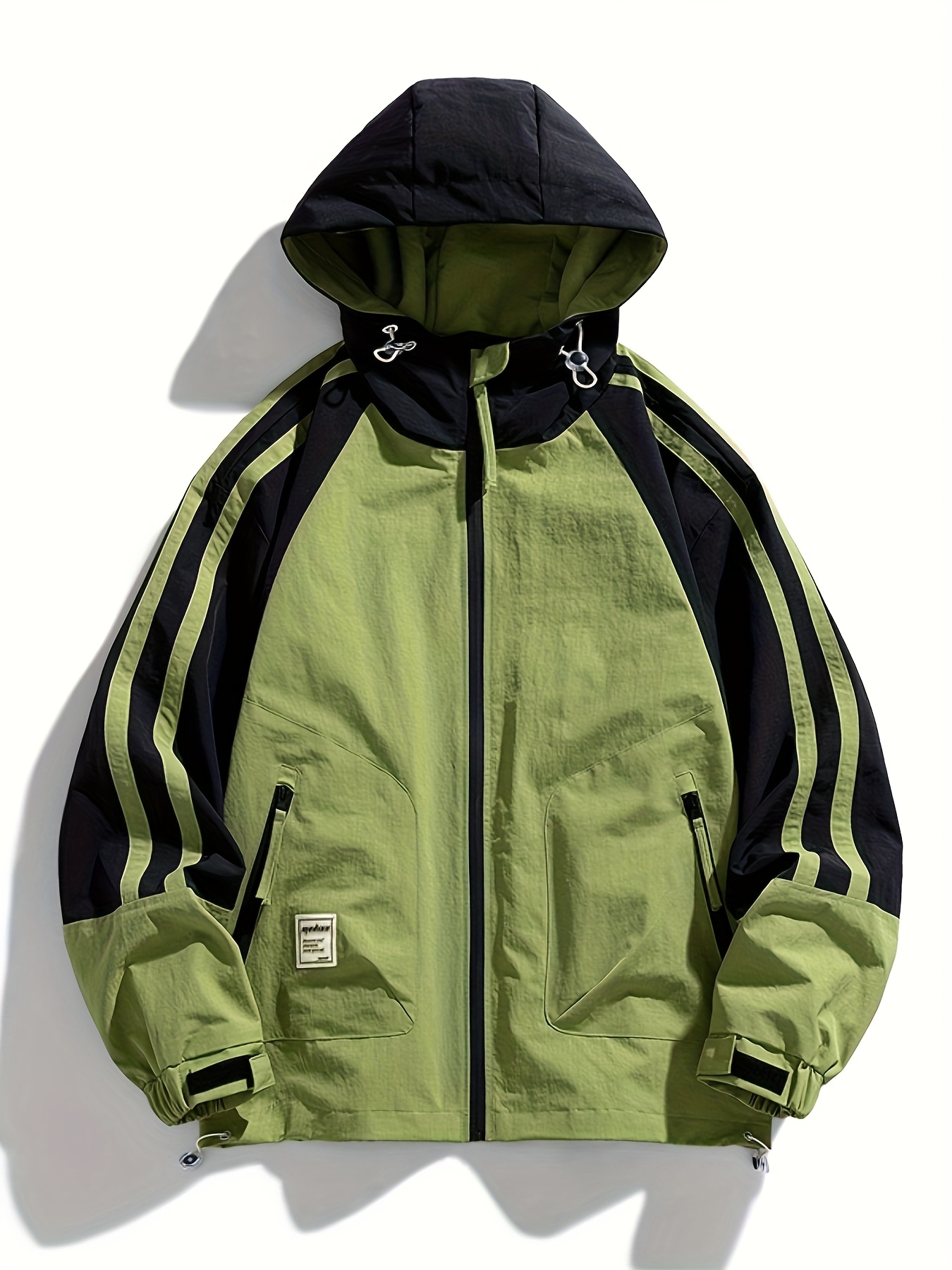 Polyester Hooded Jacket Polyester Men's Casual Hooded Jacket | Color-Block Design, Loose Fit