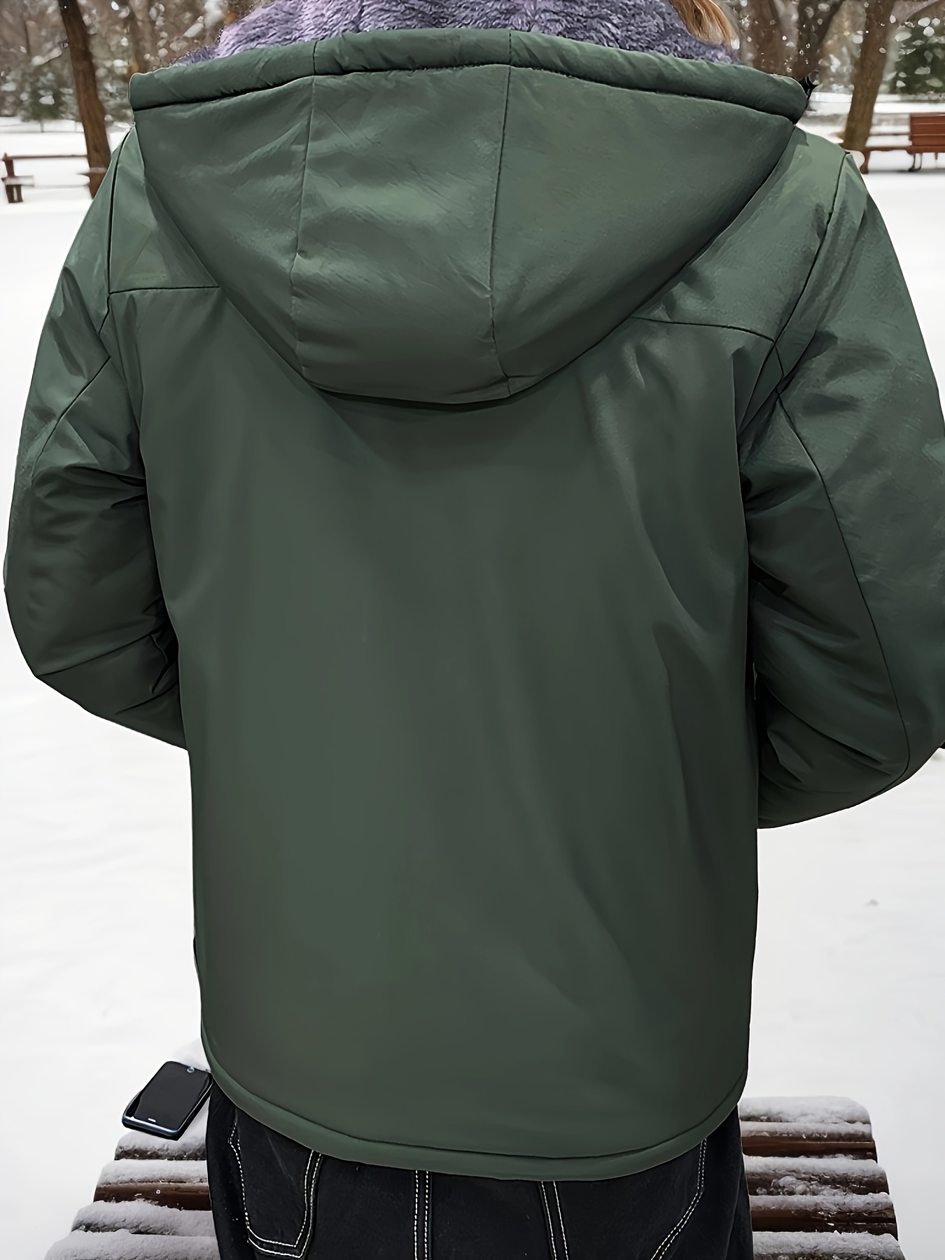 Warm Hooded Jacket Winter Warm Fleece-Lined Men's Hooded Jacket