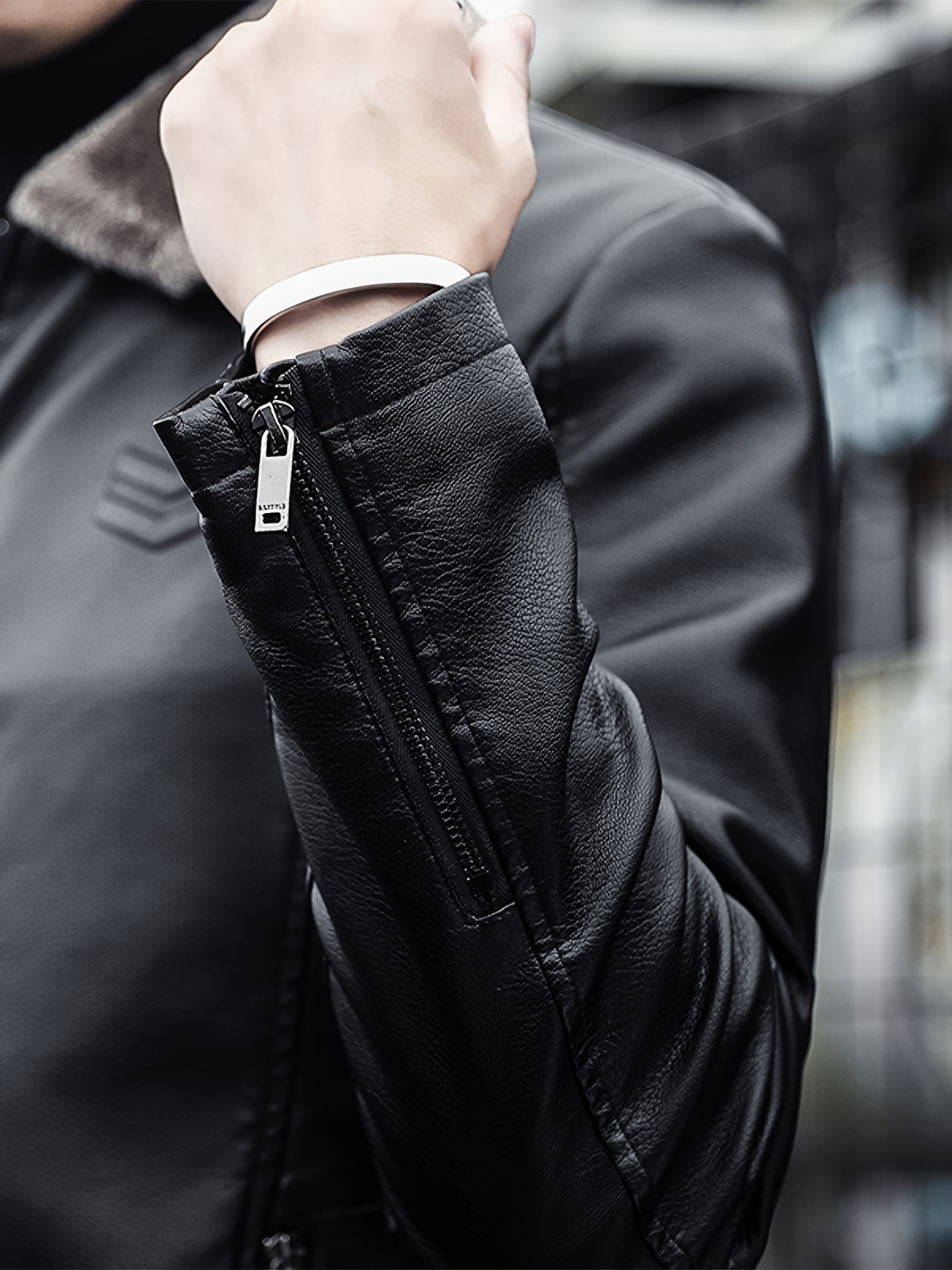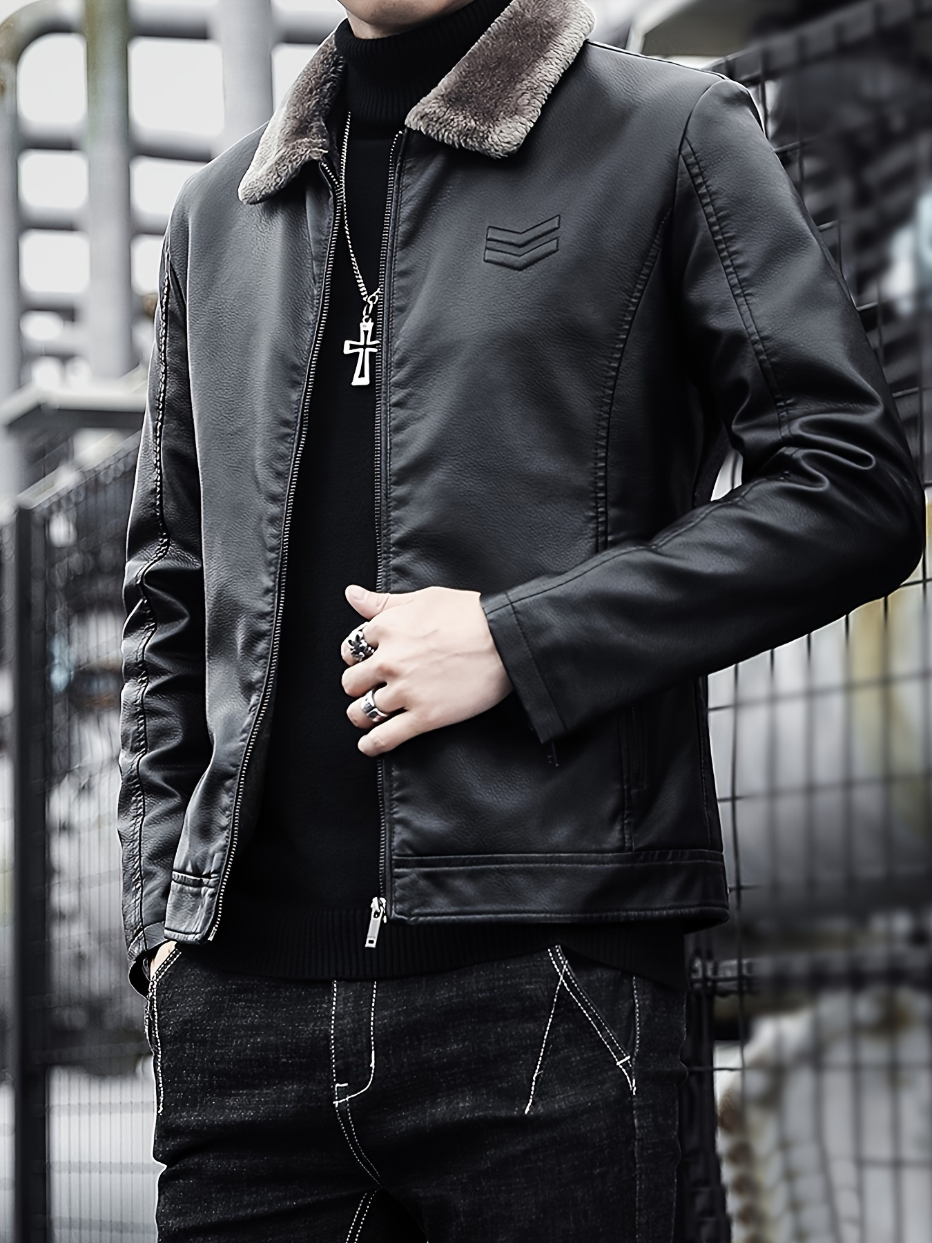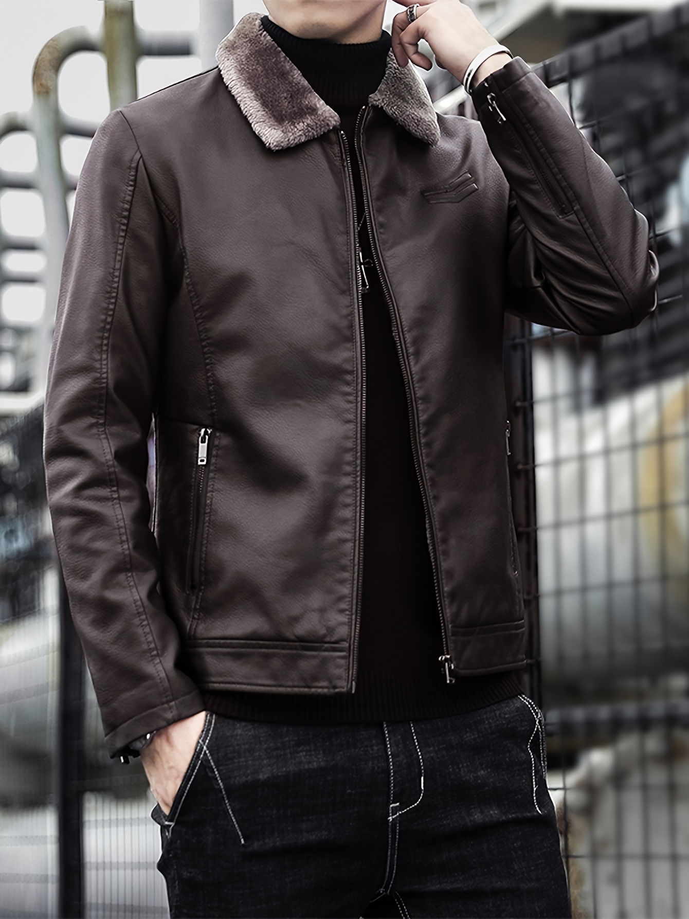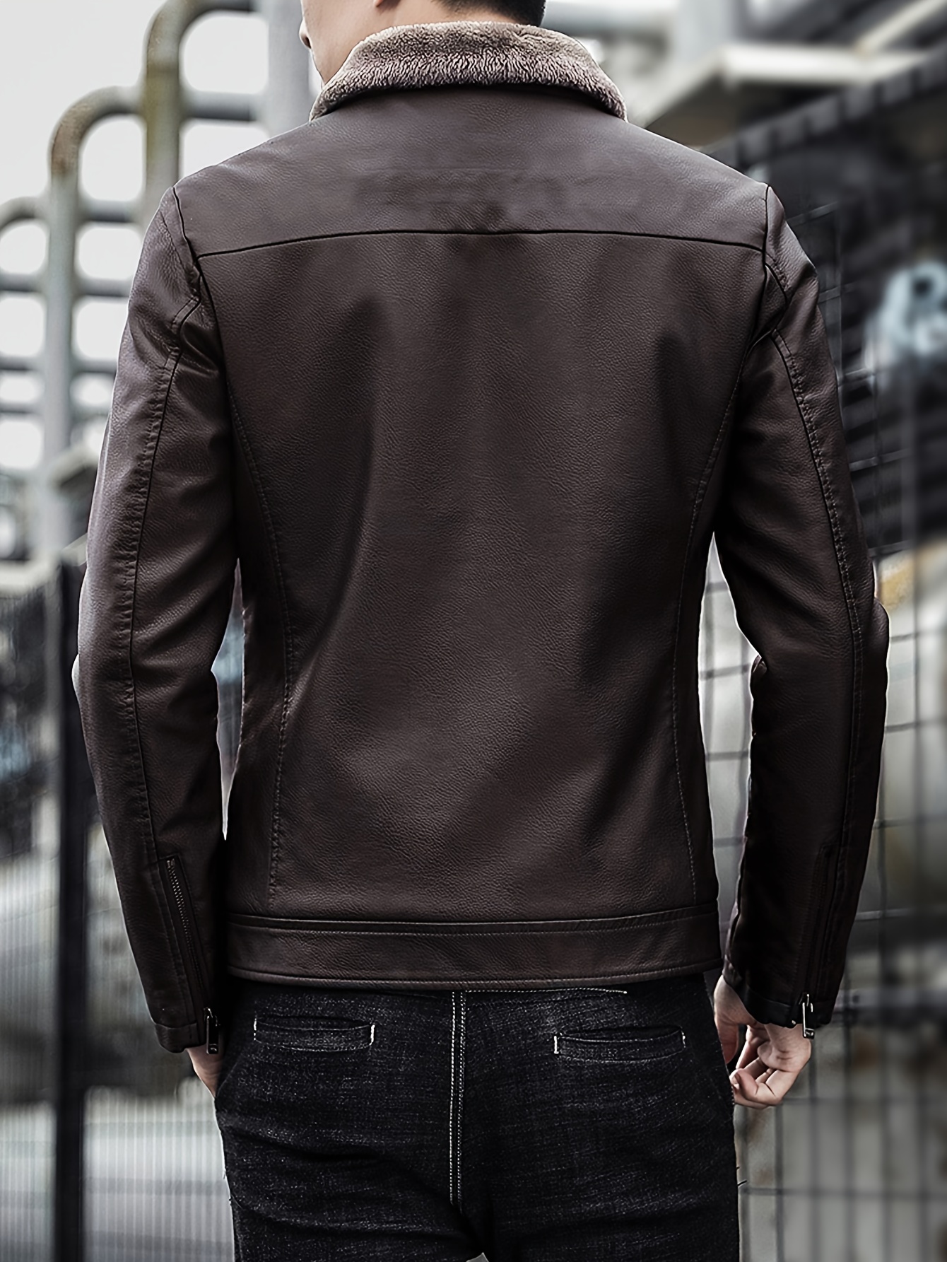 Warm Windproof PU Jacket Warm Windproof Men's Casual PU Jacket with Fleece Lining