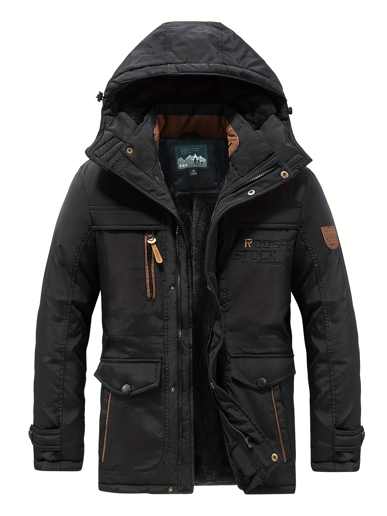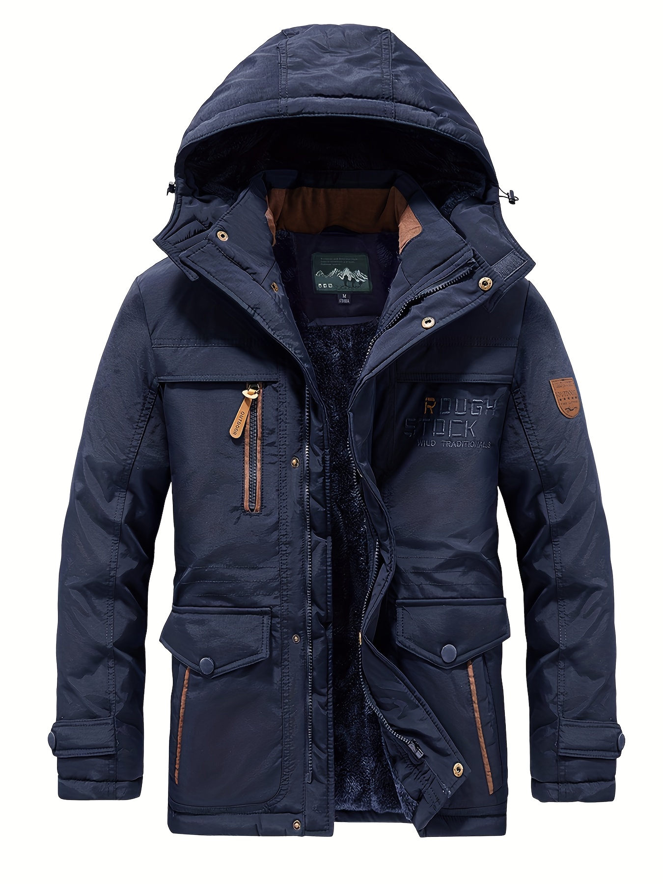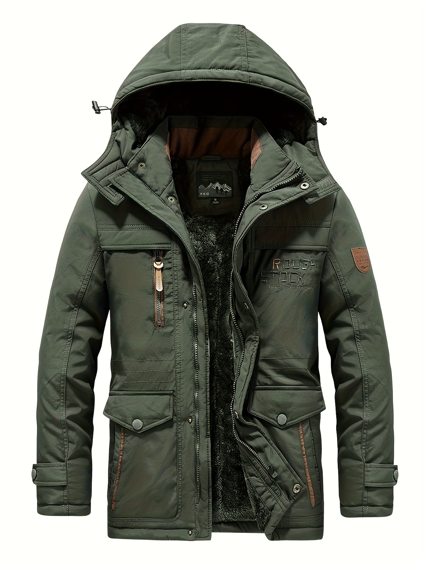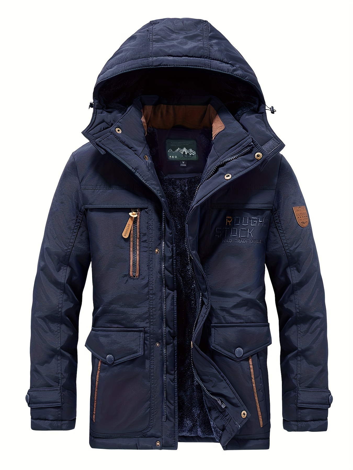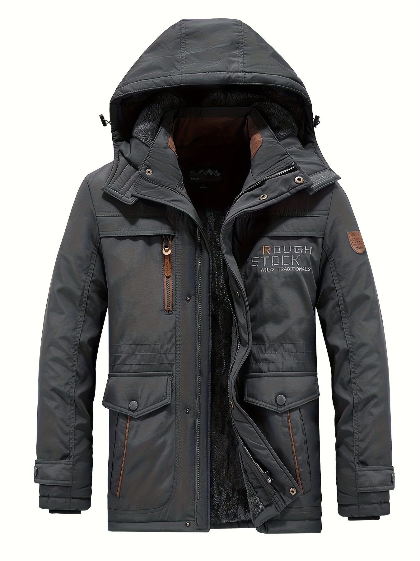 Winter Outdoor Thickened Fleece-Lined Jacket with Removable Hood Casual Windbreaker